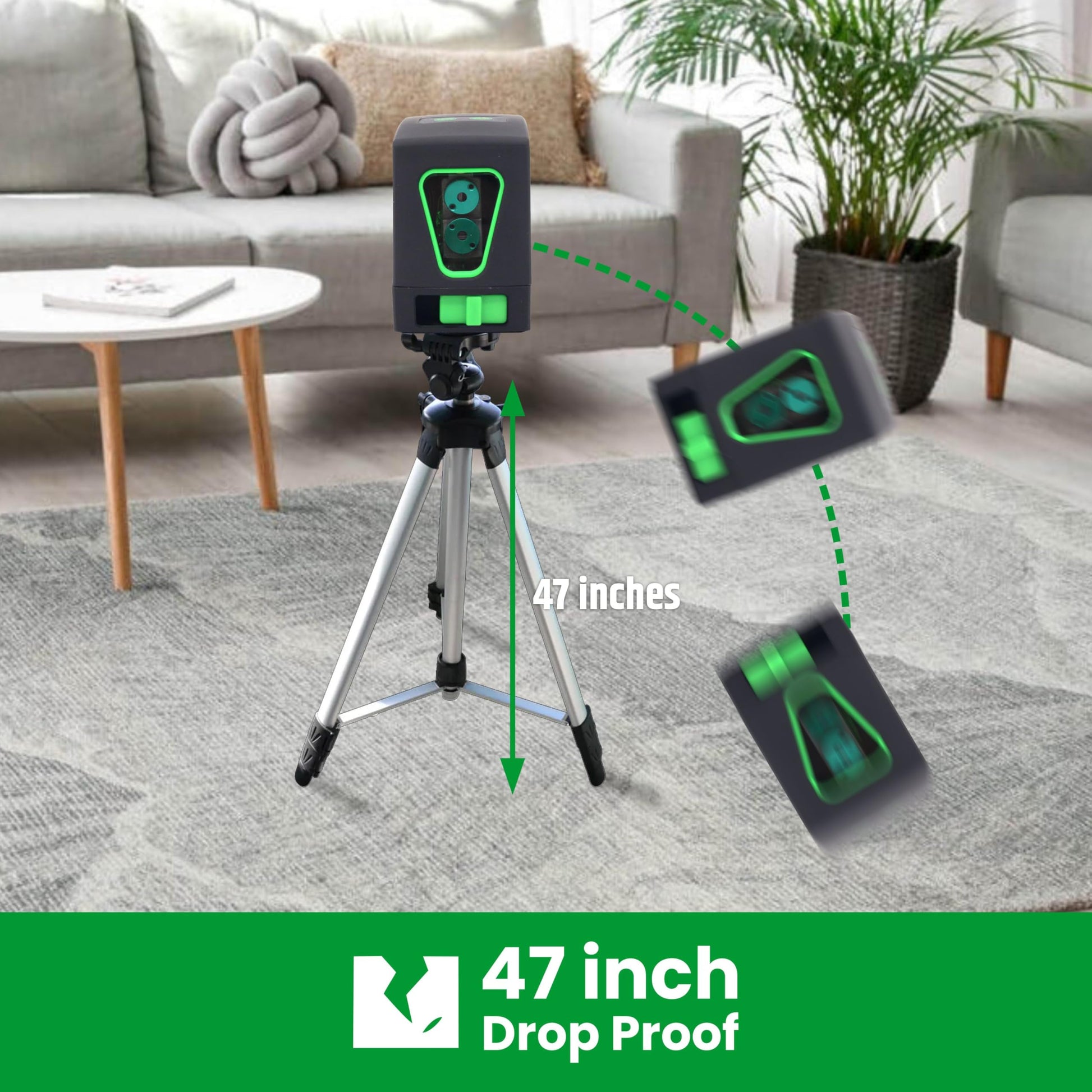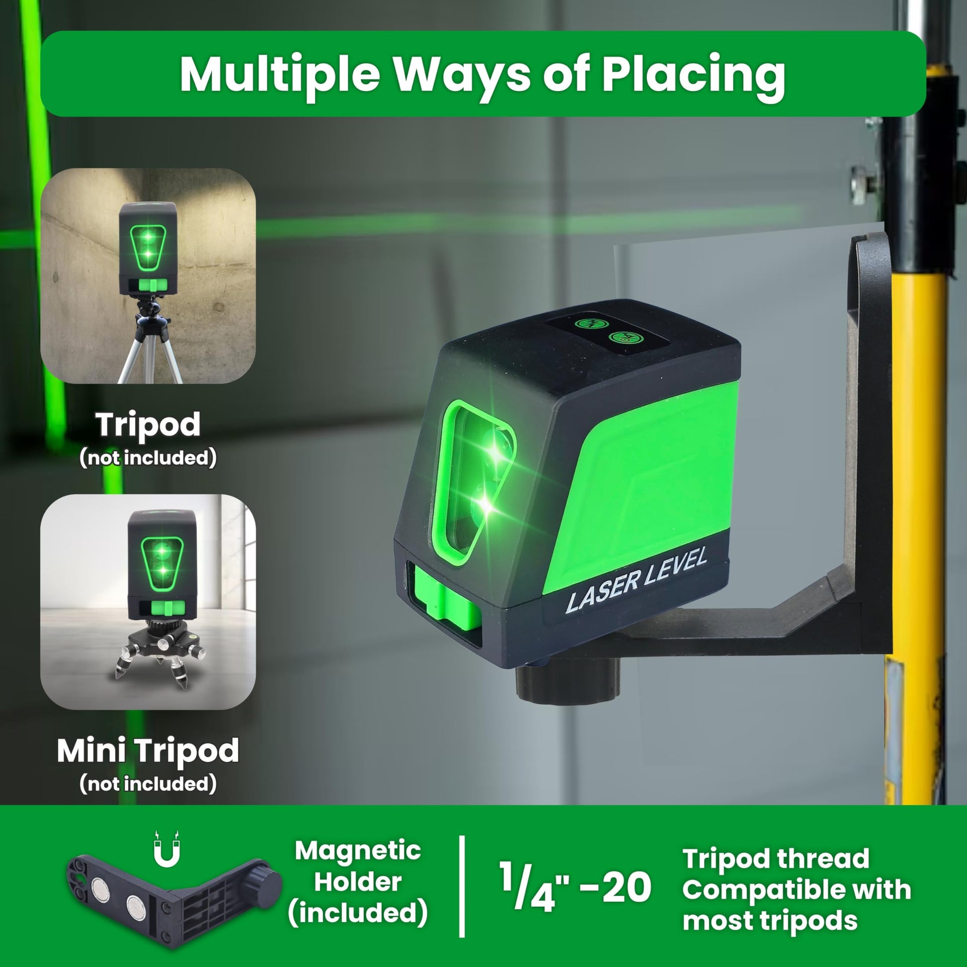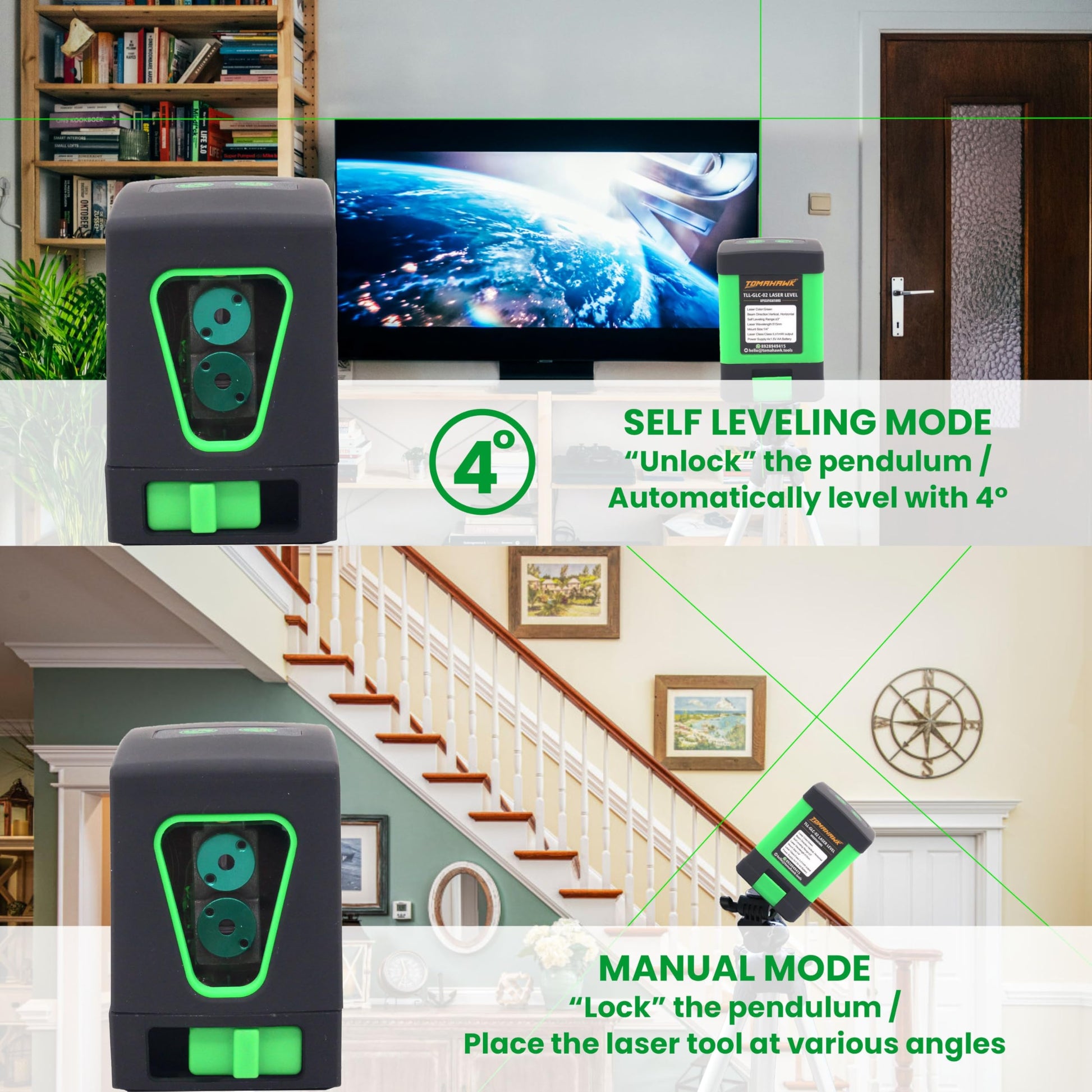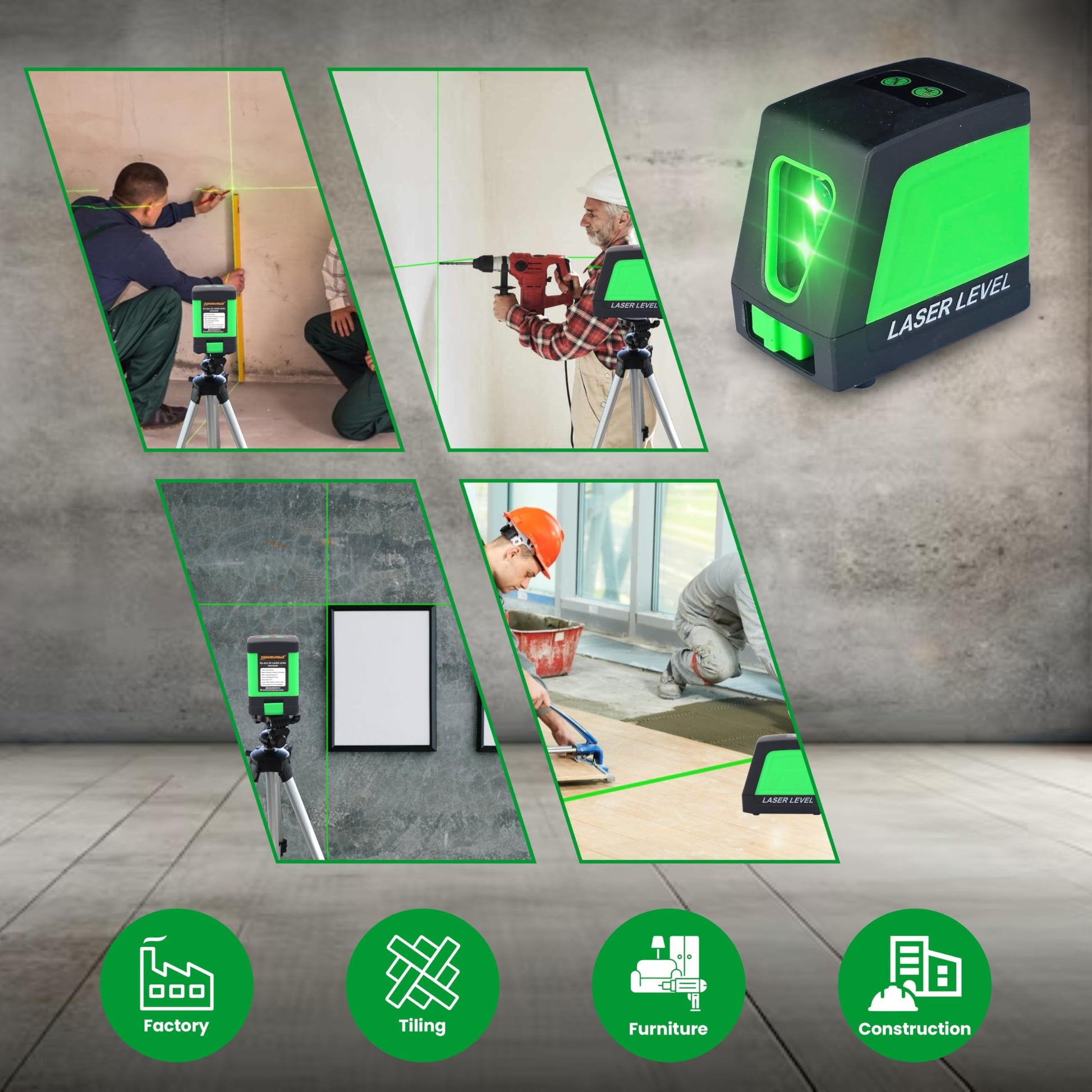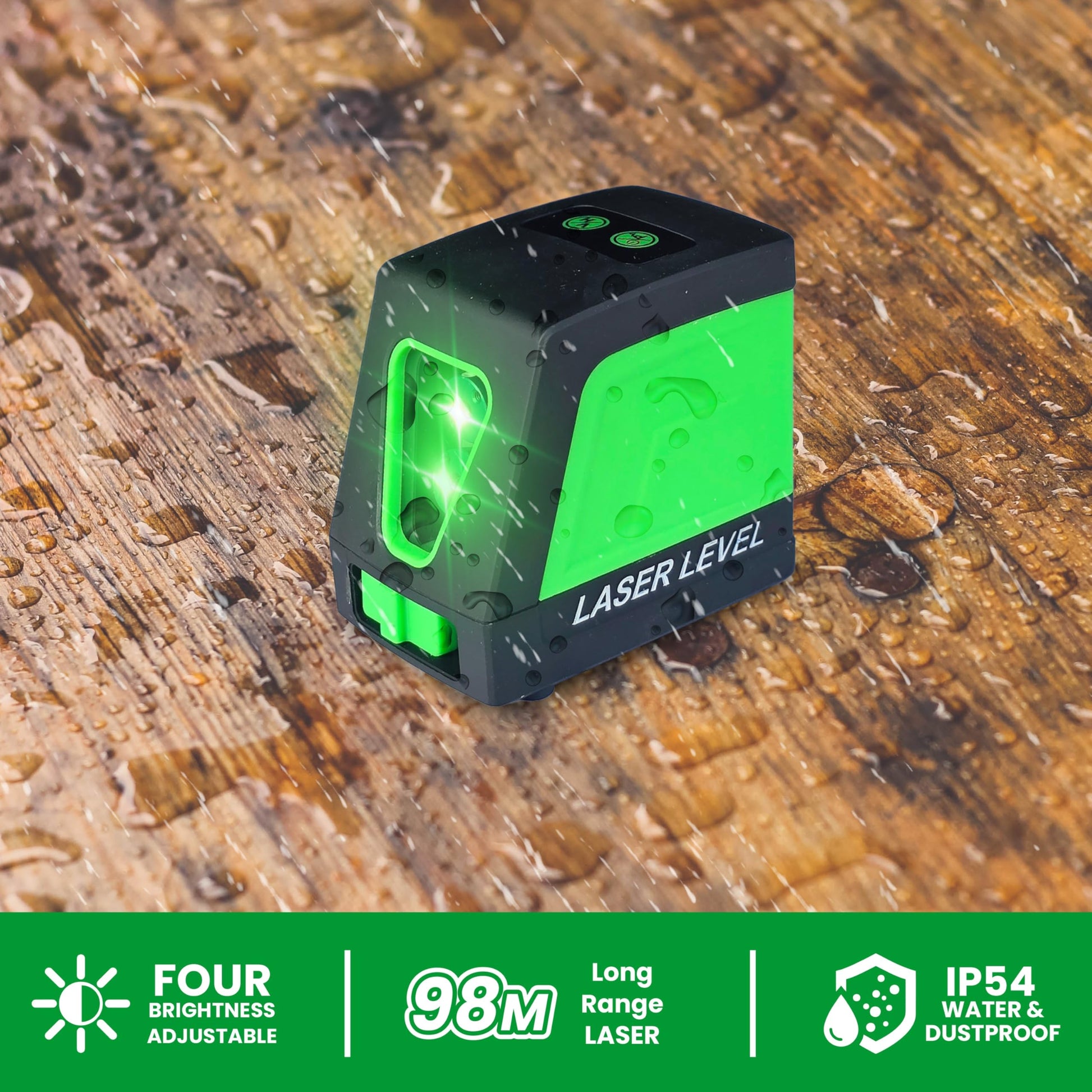 2 Line Cross Line Laser Level - Self-Leveling Green, 25m Working Distance, 3mm Precision, IP54 Dustproof - TLL-GLC-02