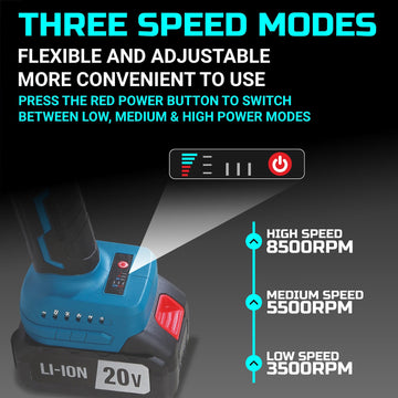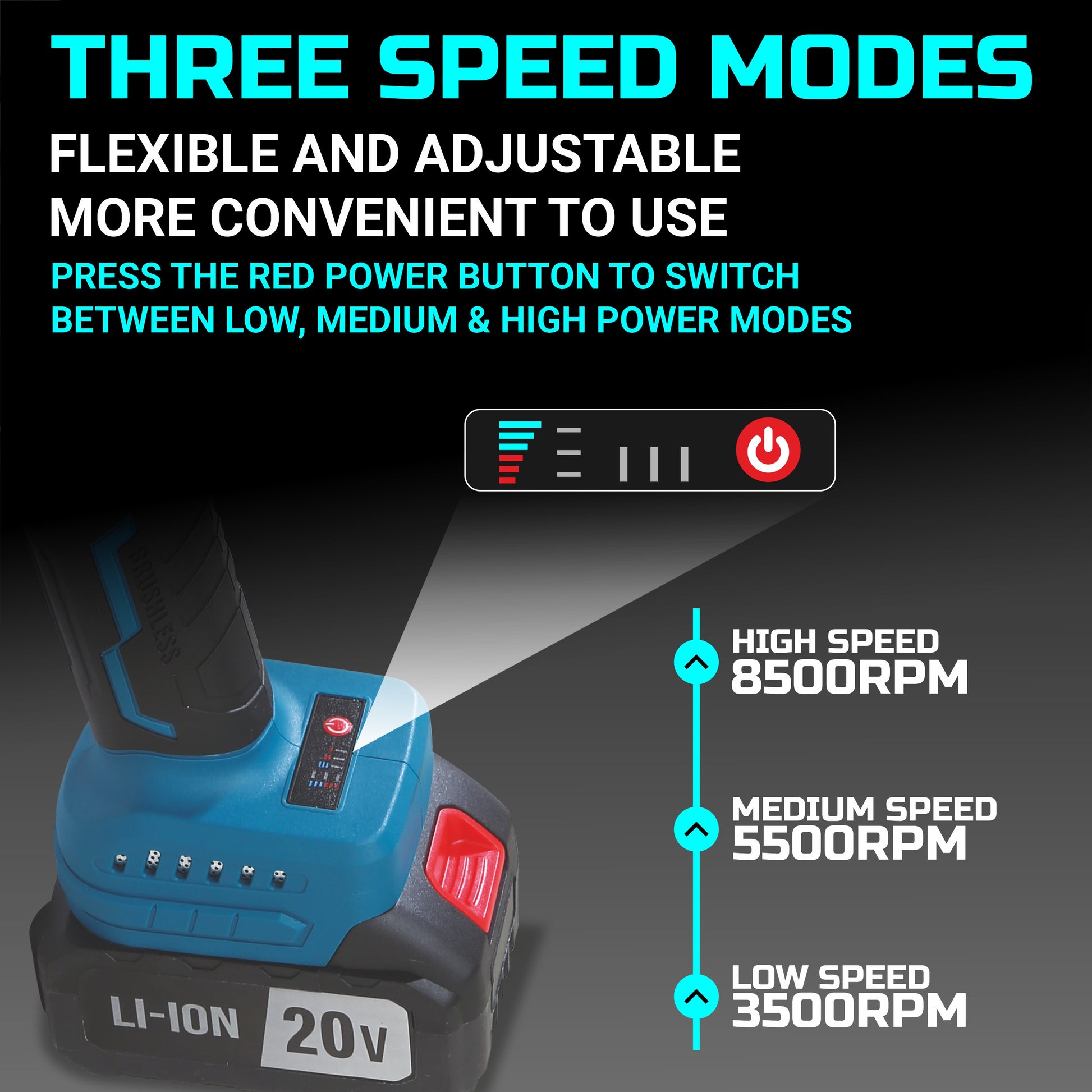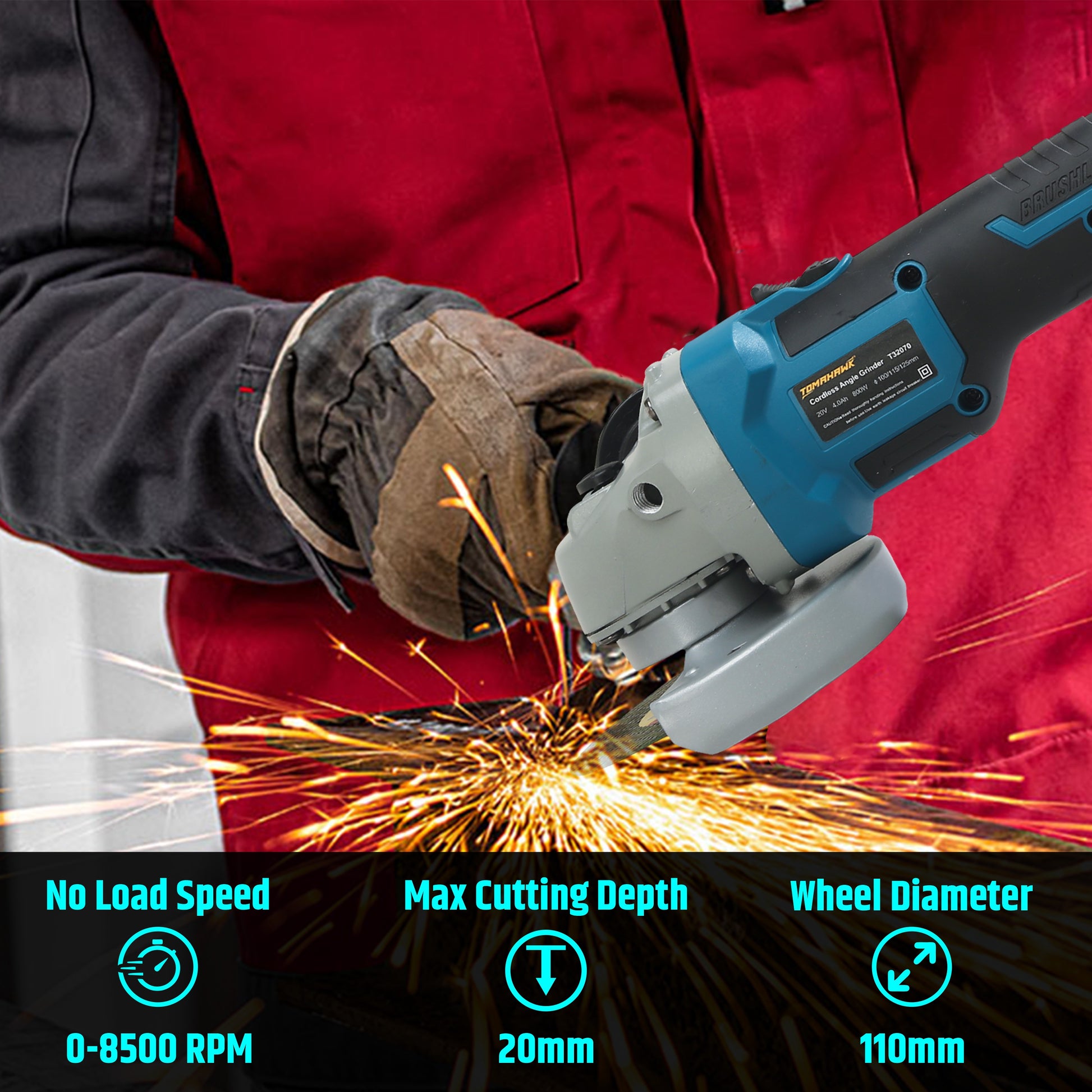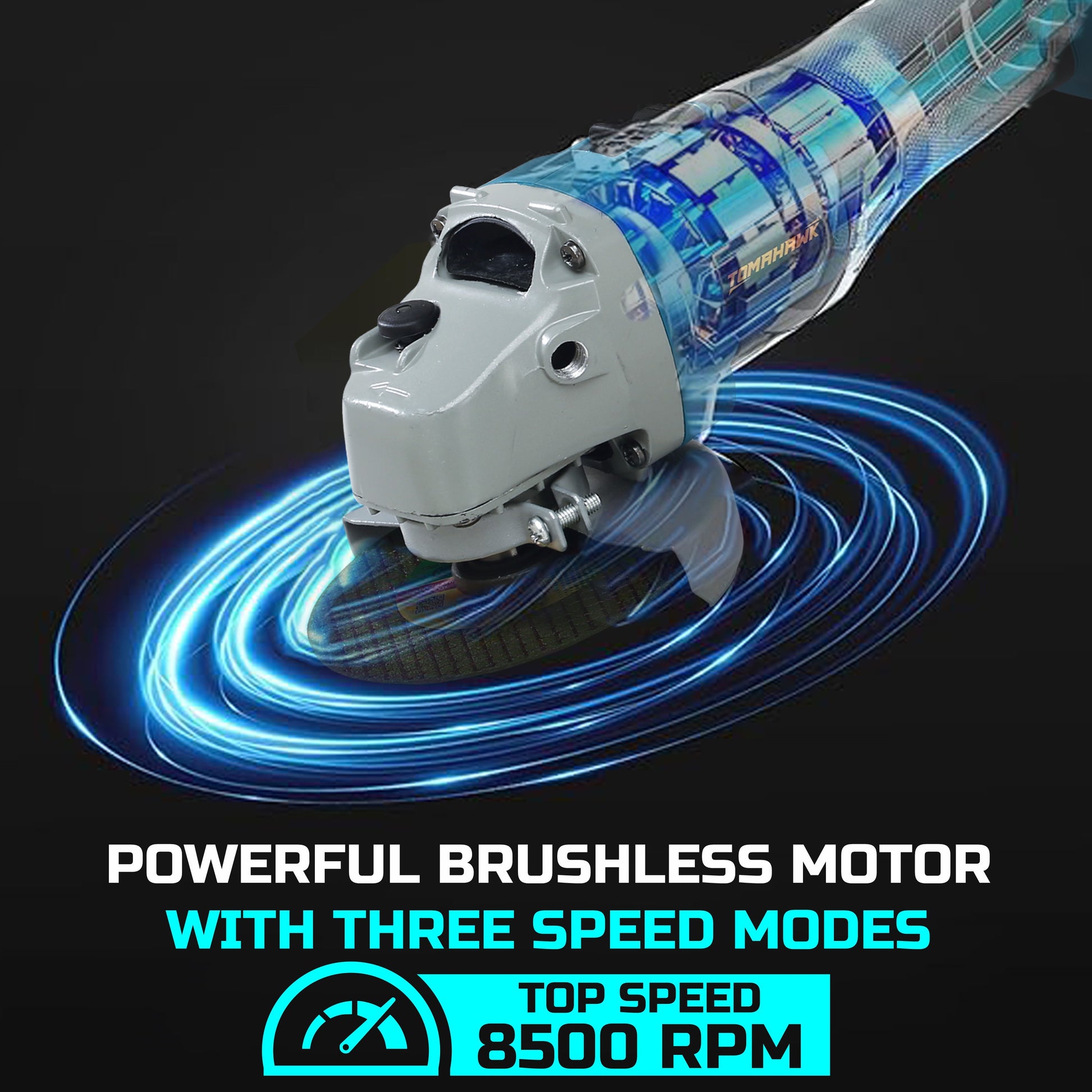 The Tomahawk's T32070 cordless angle grinder is backed by a manufacturer warranty that covers any defects related to the product's build and performance. This high-performance grinder, featuring a brushless motor for enhanced efficiency and durability, comes with a no-load speed of 0-8,500 RPM and a 110mm wheel diameter. Its versatile 3-speed modes and adjustable speed button provide precise control for cutting, grinding, and polishing.