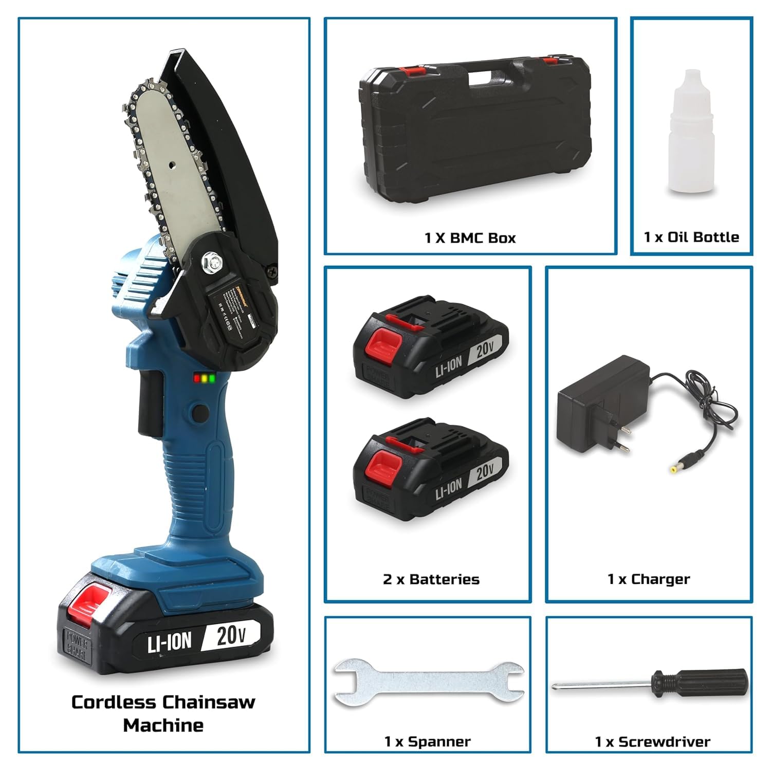 - T284A Cordless Chainsaw | 4 inch with Brushless Motor - Mini One-Hand 20 Volt, 1.5Ah Rechargeable Battery Operated | Portable Electric Handheld Saw for Gardening, Wood Cutting, Trimming