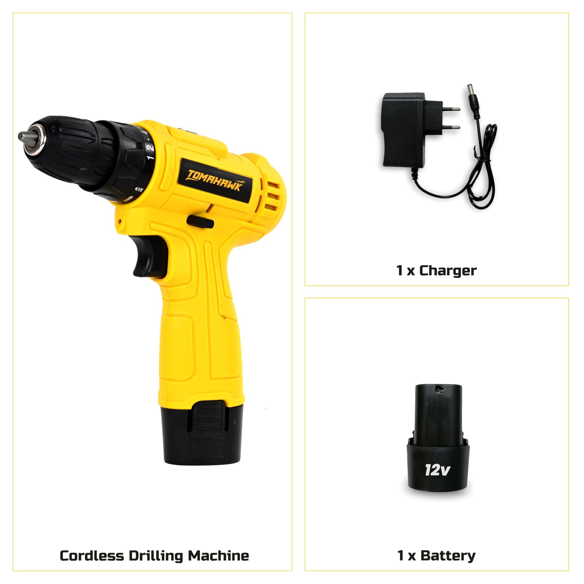 - The Tomahawk TAL-6500 12V Cordless Drill Driver delivers reliability, control, and precision for all your household and DIY projects. With a 10mm keyless chuck, 24Nm torque, and 18+1 torque settings, it provides smooth drilling and screwdriving performance across wood, steel, and plastic.