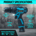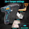 Cordless Drill Machine - 12V, 2 Batteries, 2 Speed Settings, 10mm Chuck, 25+1 Torque Settings