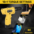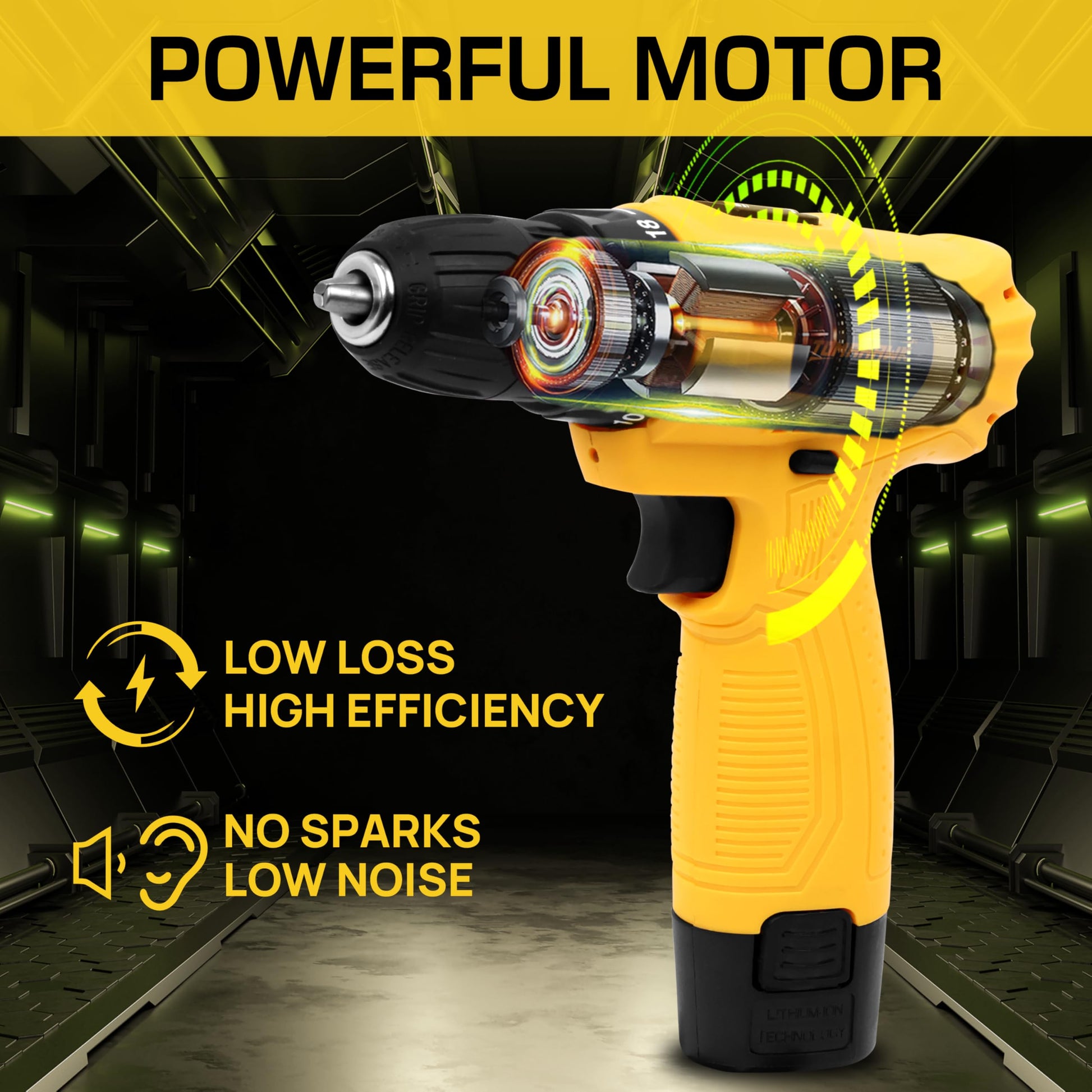 - Equipped with a built-in LED light and spirit level, it ensures accurate alignment and clear visibility, even in dark or uneven workspaces. The 10 mm keyless chuck allows instant bit changes, while 18+1 torque control prevents screw stripping and over-tightening.