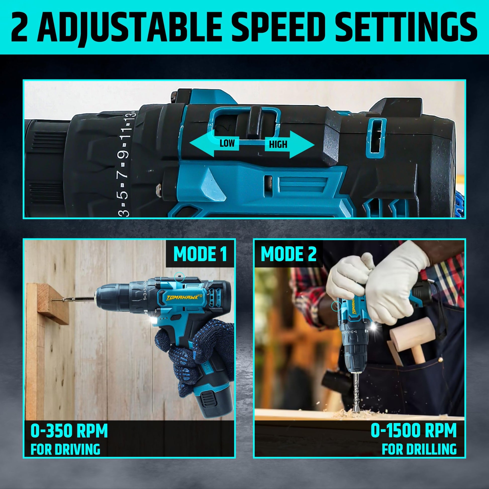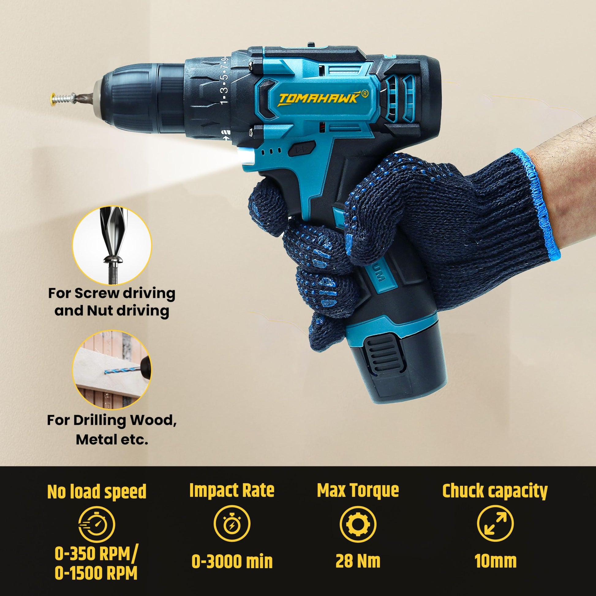 Tomahawk TYS-9055 12V Cordless Drill/Screwdriver Kit is a complete all-purpose power tool set designed for home users, DIYers, and light workshop professionals. Combining power, versatility, and convenience, this drill delivers outstanding performance for everyday tasks.