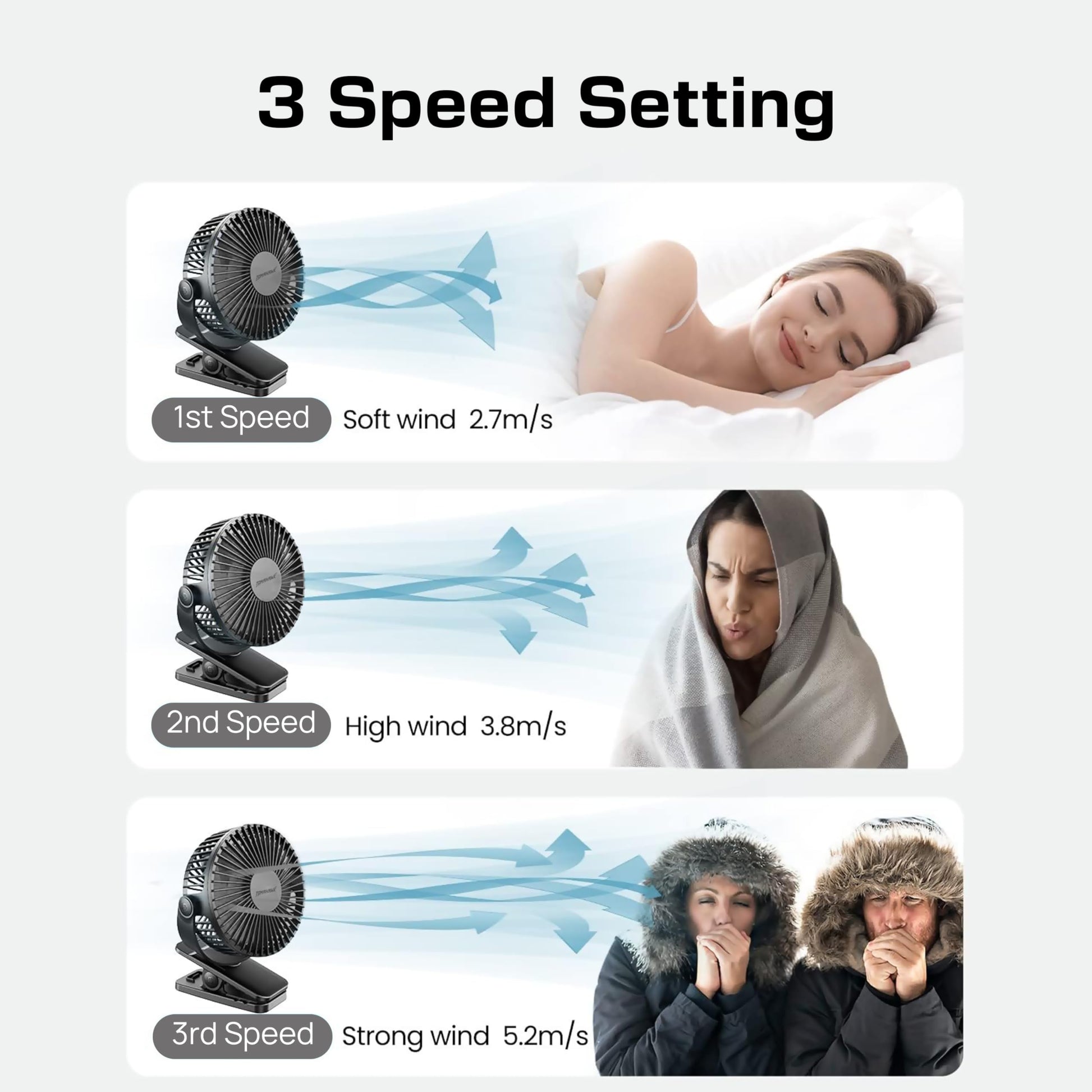 Cordless Fan - 5 Inch, 120mm Blade, 360 Degree Adjustable Rotation, Speed Control Knob - DCF-3465