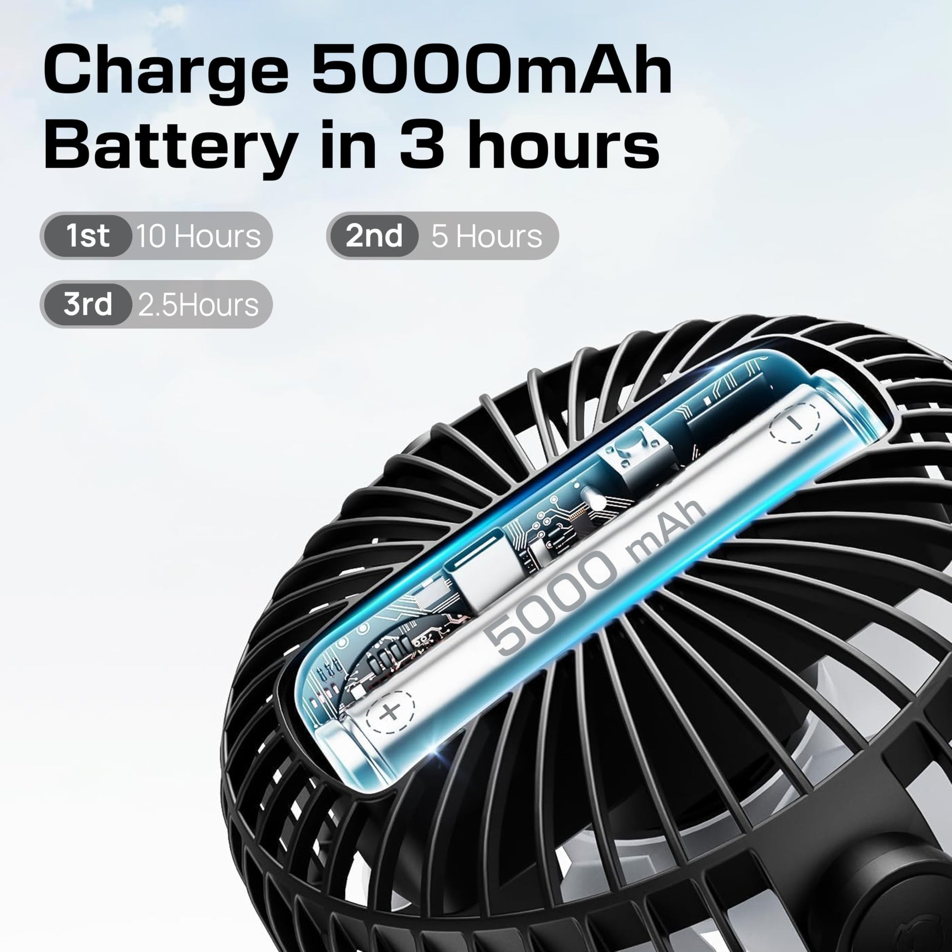 Commodity: Cordless Fan - 5 Inch, 120mm Blade, 360 Degree Adjustable Rotation, Speed Control Knob - DCF-3465