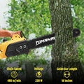- Built with advanced features, the Tomahawk Electric Chainsaw is designed for both professionals and DIY enthusiasts. The magnetic circuit motor ensures long-lasting performance, while the ergonomic design provides maximum comfort during prolonged use. With its complete package of accessories, including a front guard, bumper spike, and a screwdriver & L spanner combined, this chainsaw is ready to use right out of the box. Whether you're clearing your yard, trimming branches, or cutting firewood, this chainsaw ensures efficiency and reliability in every task.