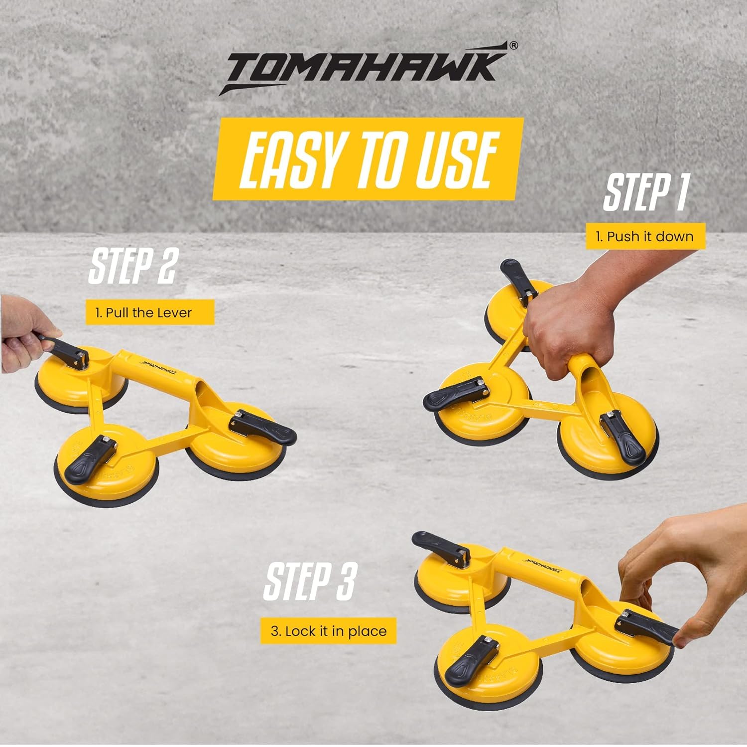 Whether you're a professional or a DIY enthusiast, the TOMAHAWK® OGSC 3 Glass Vacuum Suction Cup is versatile and perfect for moving a variety of flat objects, including glass, floors, windows, tiles, granite, marble, and doors. It performs well in temperatures ranging from −10°C to 40°C, and the reliable lock and release ABS cover make it user-friendly and easy to operate.