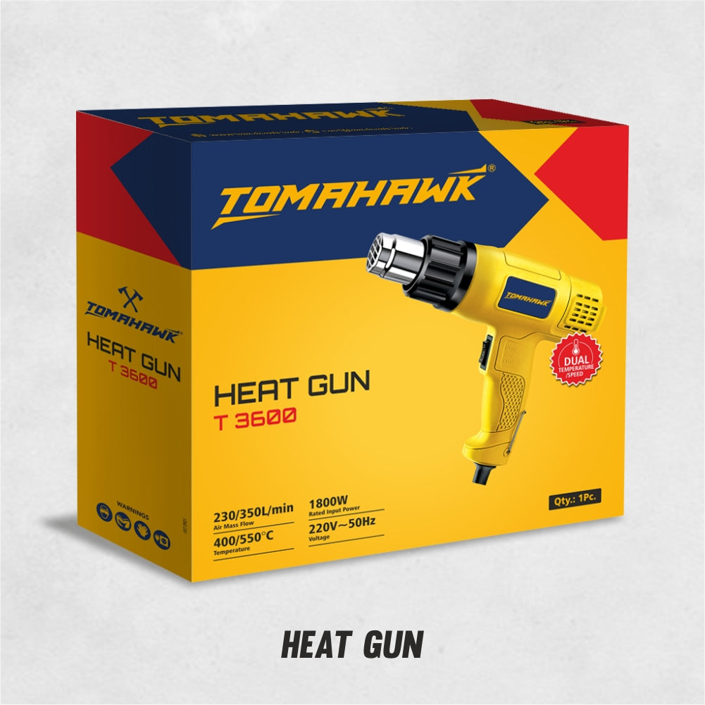The T3600 Heat Gun, made in India, delivers 1600W of power with a 100% copper armature and field coil for durability. It features adjustable temperature settings from 200°C to 600°C and a strong airflow range of 230 LPM to 350 LPM. Ideal for versatile heat applications like stripping paint, shrink wrapping, and more.