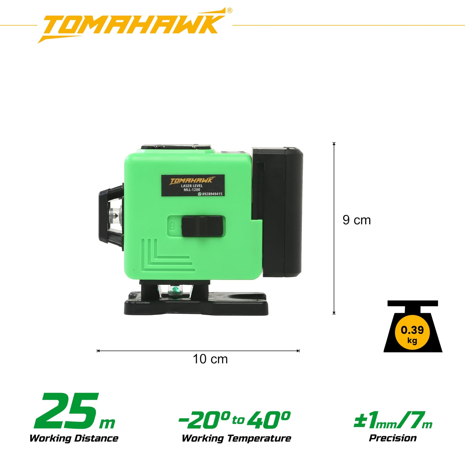 Compact, durable, and highly versatile, the TOMAHAWK® MLL-1200 12-Line Green Laser Level Pro is an essential tool for professionals and DIY enthusiasts looking to achieve accurate and reliable leveling on any project.