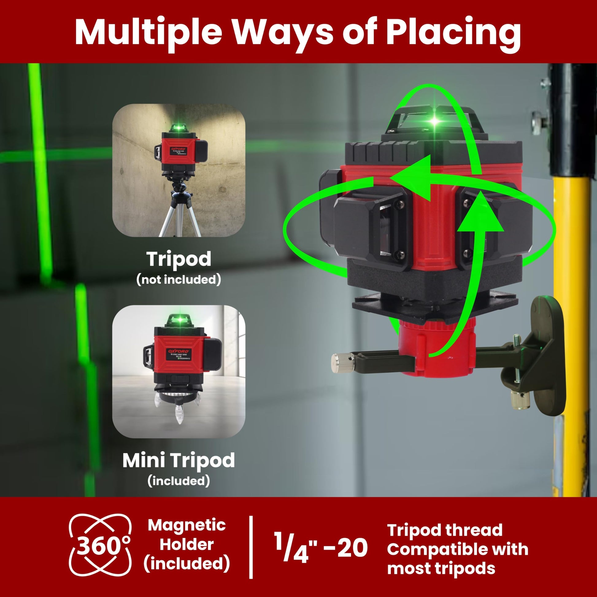 Laser Level - 4 x 360° Green Line Self-Leveling IP54 Waterproof Dustproof - OLL-32