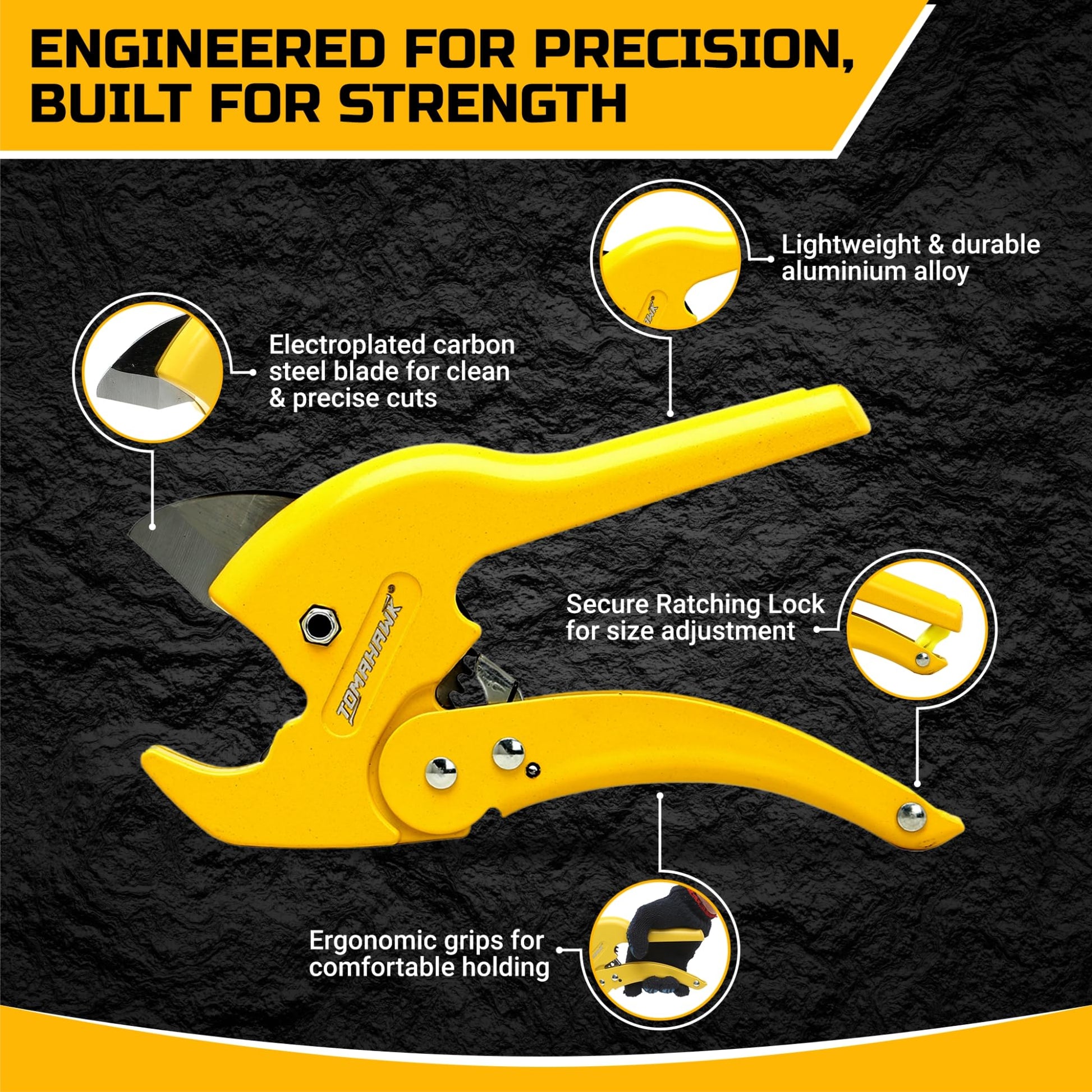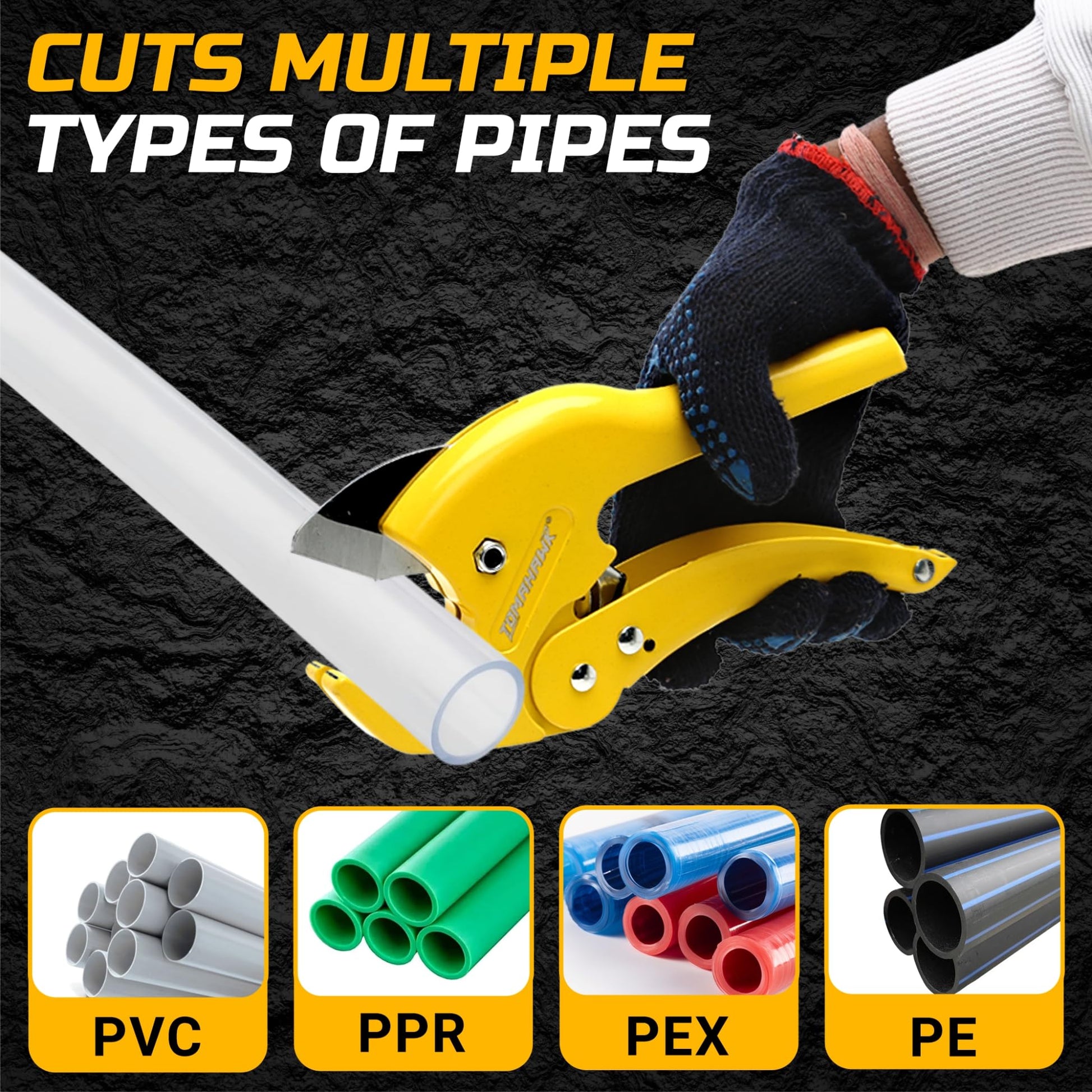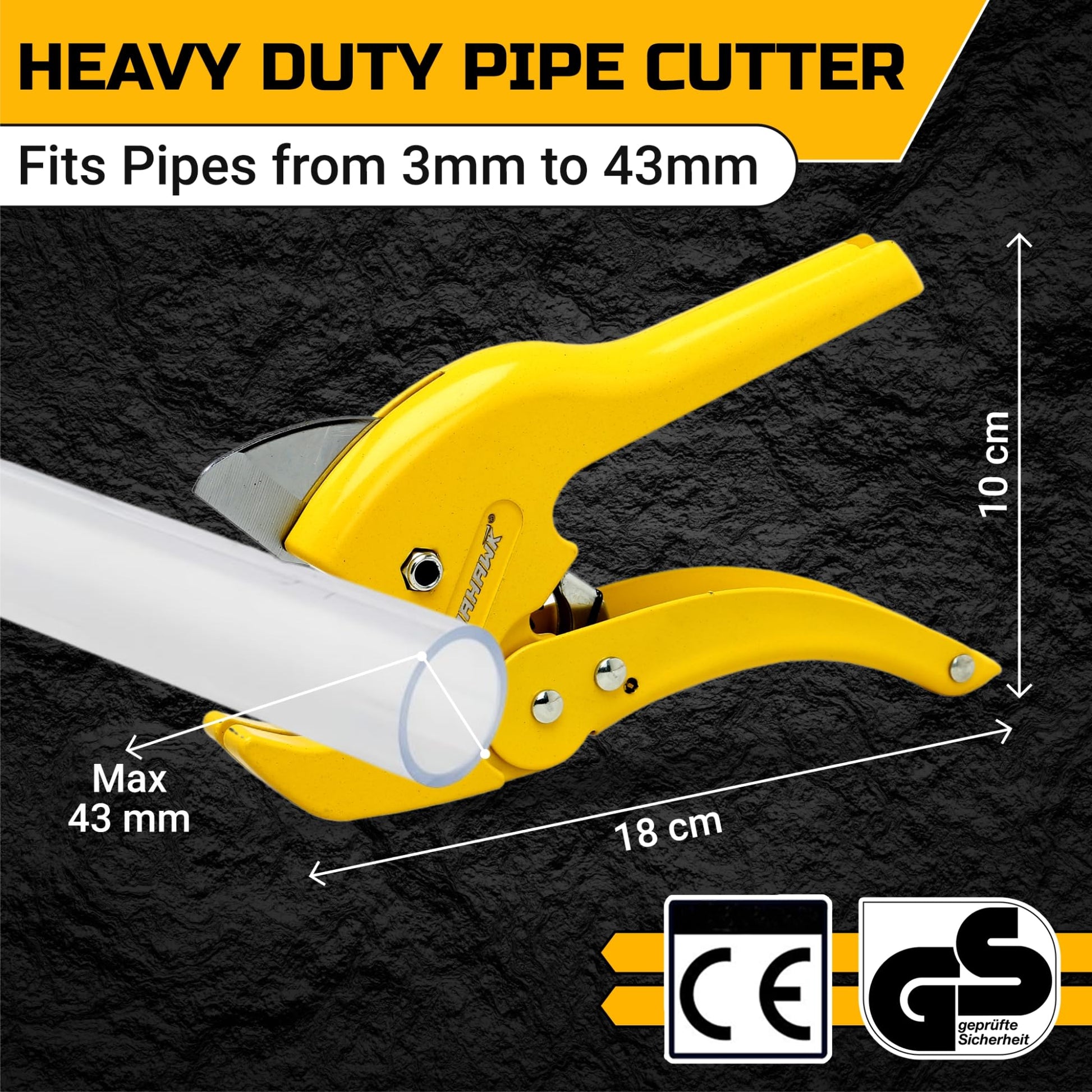 - With a cutting capacity of 3mm to 42mm, this versatile tool is perfect for various plastic pipes, including PVC, PPR, PEX, PE, and rubber hoses. Its ergonomic design and lightweight construction make it ideal for both home and professional use. The ratcheting lock mechanism ensures easy size adjustments and secure operation, offering precise cuts with minimal effort. Certified by CE and GS, the PVC Pipe Cutter guarantees safety and quality for every project.