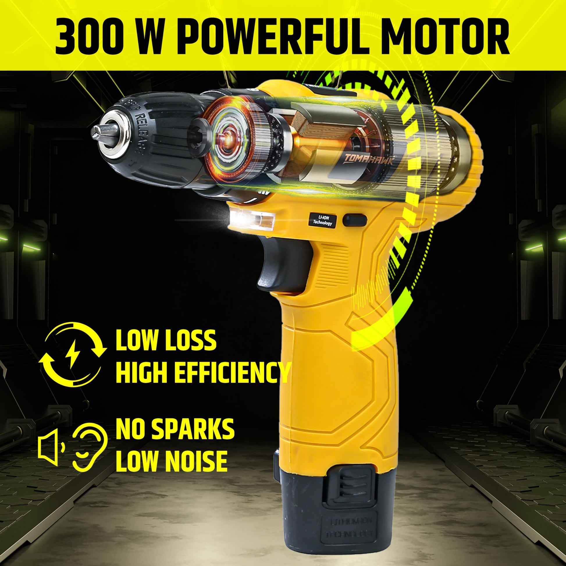 • The TOMAHAWK T SSS-3111 Cordless Screwdriver & Drill Set is engineered to deliver exceptional performance and convenience in a compact and lightweight design. With a powerful 300W motor and a no-load speed of 0-350/1350 RPM, this tool is well-suited for a variety of tasks including drilling into wood (up to 25mm), metal (up to 13mm), and masonry (up to 13mm).