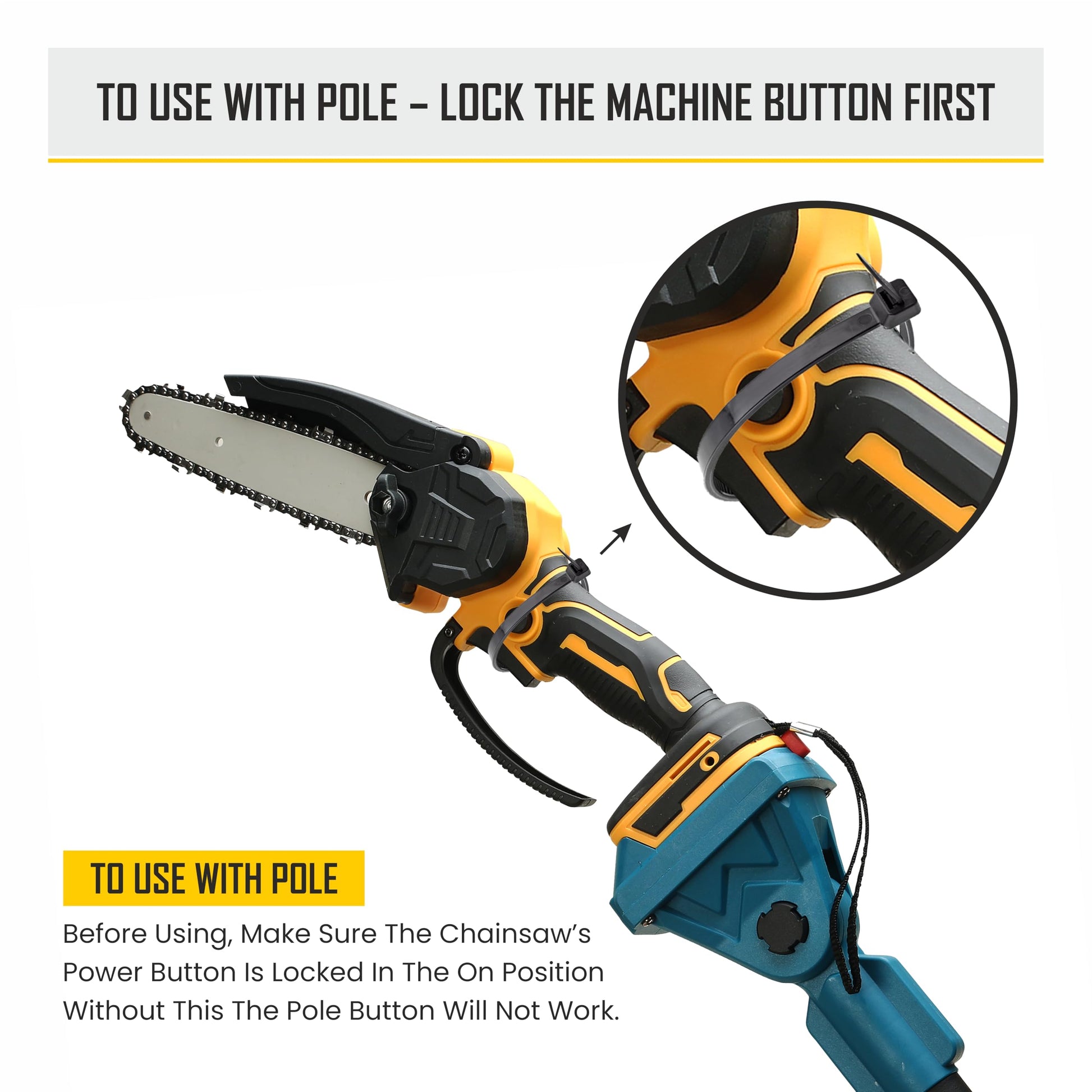 - TOMAHAWK® Cordless Pole Saw ideal for heavy-duty tasks such as logging, pruning, and woodworking in gardens, farms, and pastures. Retractable and foldable design, makes the electric pole saw easy to work with different heights and easy to store. The cordless battery chainsaw has a long battery life: 2 large-capacity lithium batteries can be replaced at will, allowing you to easily power the battery-powered cordless chainsaw outdoors. With an unique teeth design and ultimate high chain speed, you don't need to force the portable chainsaw through the cut. Just apply light pressure to control the position.