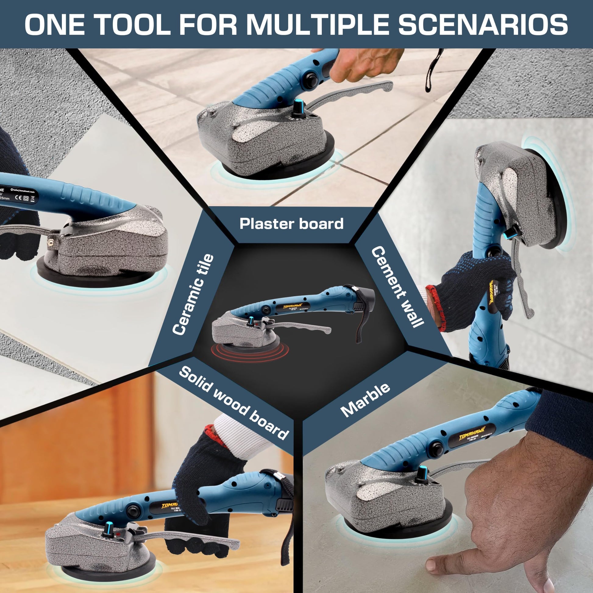 - The YLM-4850 Tile Vibrator Machine is engineered for efficiency and precision in tile installation. With a powerful vibration frequency of 10,000 vibrations per minute and a 130mm diameter, this machine effectively eliminates air pockets and ensures a smooth, even finish. Its lightweight design (1.3kgs) and compact form make it easy to handle and maneuver, even in tight spaces, enhancing your overall productivity on the job. Equipped with a 12V, 1.5Ah battery and a range of user-friendly features, including a 5-speed high-frequency control and suction lock, the YLM-4850 offers customizable performance tailored to your specific needs. The rubber cushion handle provides a comfortable grip, while the integrated spirit level ensures accurate installation every time. Whether you’re a professional contractor or a DIY enthusiast, this tile vibrator machine is an essential tool for achieving flawless tile work.