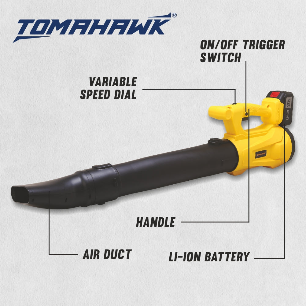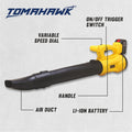 The TLB040 cordless leaf blower combines a powerful pure copper motor with an impressive airflow speed of 200 km/h and a no-load speed of 0-17,000 RPM. It features a 3Ah battery and a maximum air volume of 450 CFM for efficient performance. Enjoy customizable blowing with 6 variable speeds, and convenience with a self-lock button, fast charger, and two removable extension tubes for versatile use.